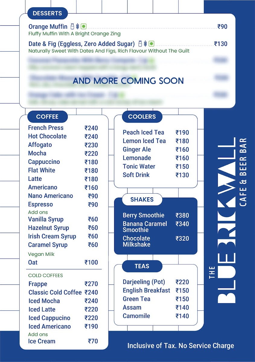 Welcome to The Blue Brick Wall, a hidden gem nestled in the heart of Miramar, Panaji. This charming cafe offers more than just delicious food; it provides an experience that combines warmth, creativity, and a uniquely inviting atmosphere. Whether you're looking for a cozy corner to read, a vibrant space to socialize, or a serene spot to unwind, this cafe ticks all the boxes.